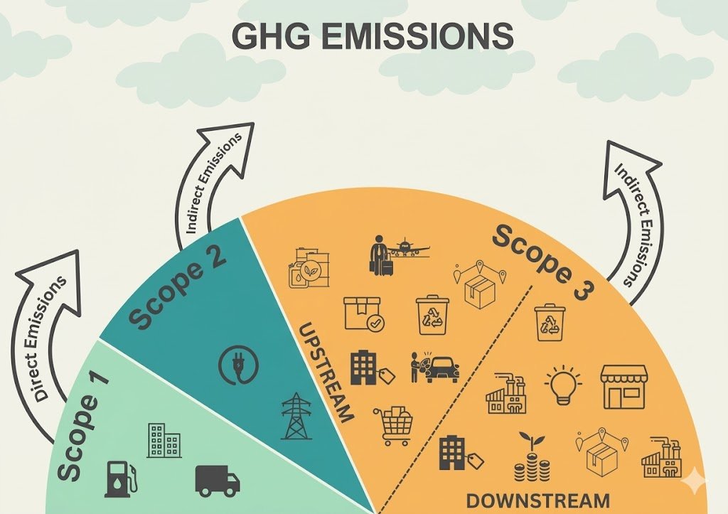 What are Scope 3 emissions? All indirect greenhouse gas emissions across your value chain. These include emissions from raw material extraction, supplier manufacturing, inbound logistics, and end-of-life processing — everything you don’t own or control. For most manufacturers, this is 70 to 90% of total corporate emissions.